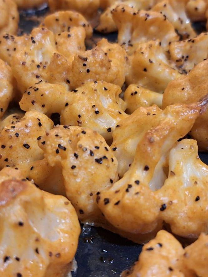 Blumenkohl gründlich waschen und vorsichtig in kleine Röschen teilen. Diese im Wasser mit dem Salz und der Muskatnuss bissfest garen. Mit einer Schaumkelle entnehmen und gut abdampfen / trocknen lassen.